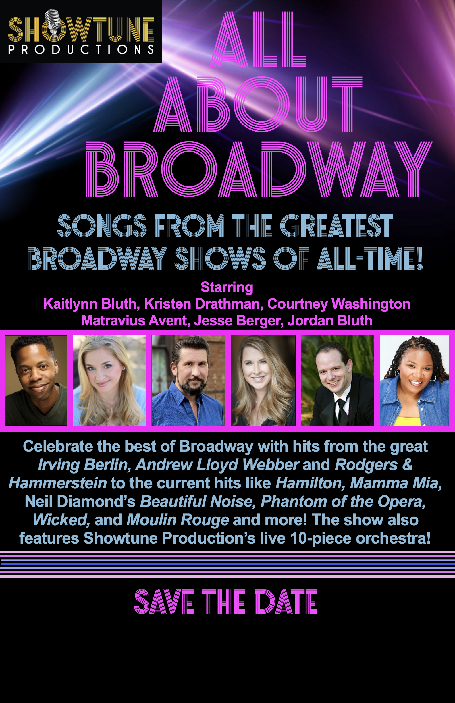 This production celebrates the best of Broadway with iconic songs from legendary composers like Irving Berlin, Andrew Lloyd Webber and Rodgers & Hammerstein, plus modern favorites like Hamilton, Mamma Mia, Neil Diamond's Beautiful Noise, Phantom of the Opera, Wicked, Moulin Rouge, and more! Performed by six vocalists and backed by Showtune Productions' vibrant 10-piece orchestra, this exhilarating musical journey promises an evening of unforgettable performances.